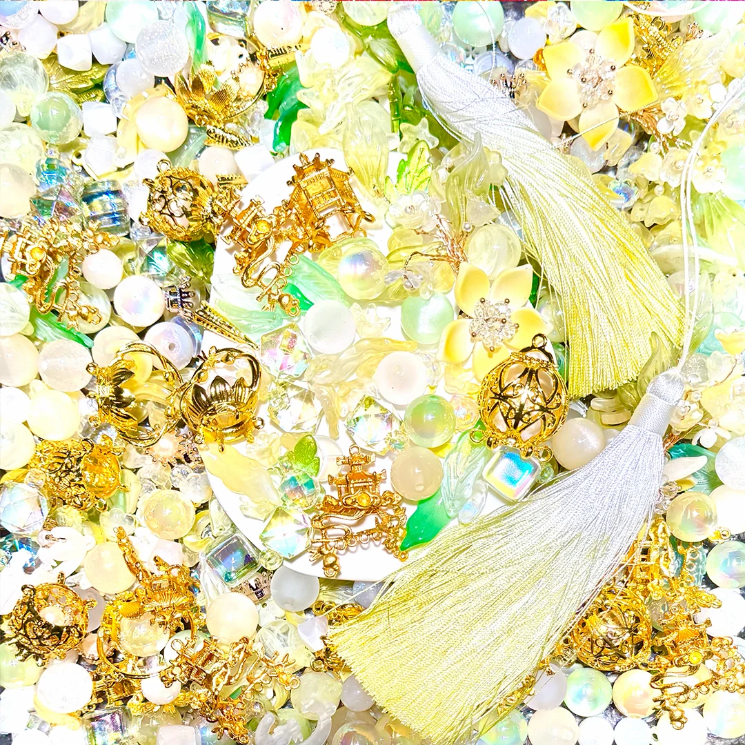 Color: Mainly in translucent light yellow-green, paired with pale white and light cyan, plus gilded accents—creating a crisp yet gentle winter vibe.