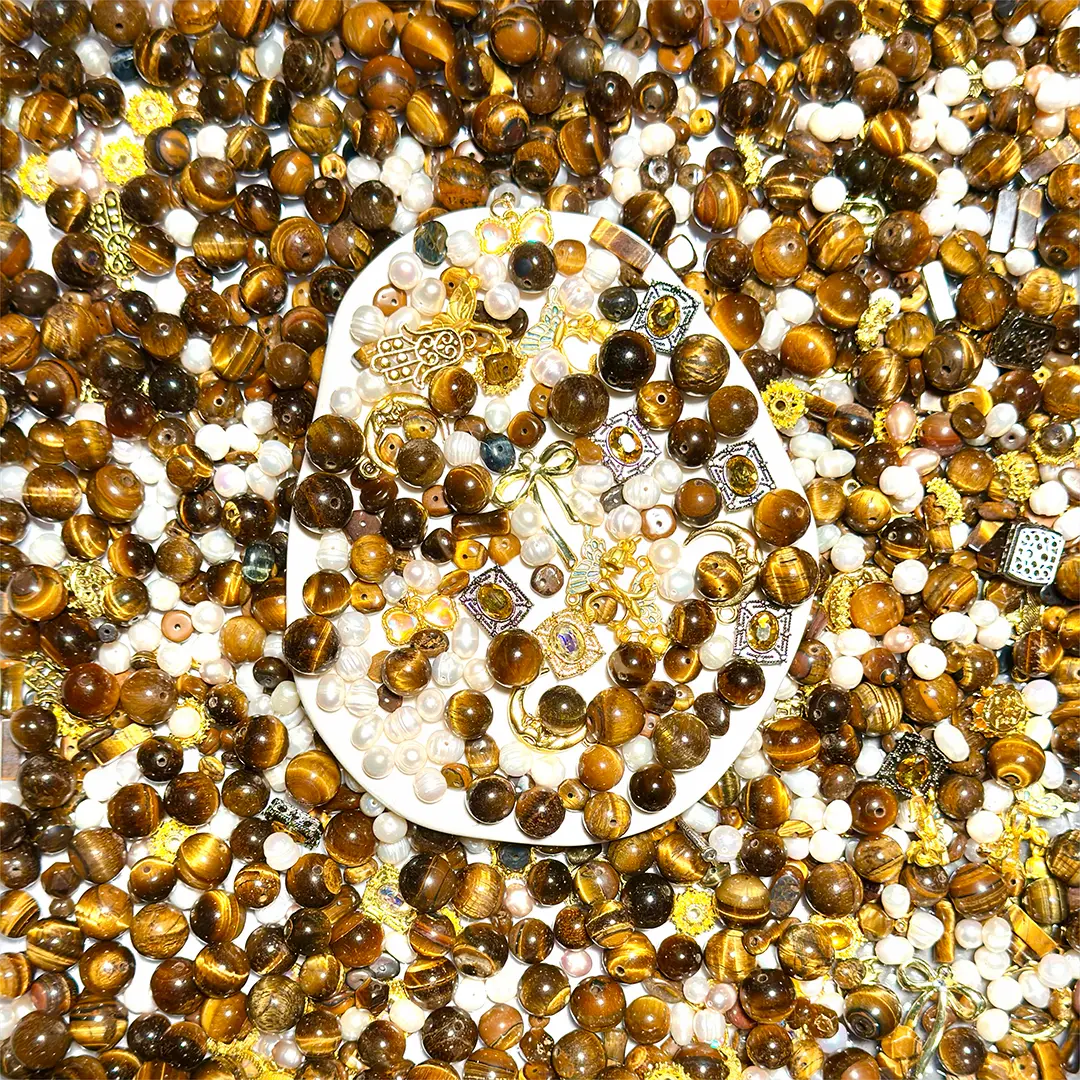 •Design: The mix integrates assorted-sized tiger’s eye beads, round creamy pearls and delicate alloy accessories, with the sample being a bracelet. All components are fully stringable for free mixing and matching, allowing you to create unique bracelets and keychains that reflect the steadiness and warmth of the earth. The overall design is simple and sophisticated, highlighting the natural luster of tiger’s eye, the elegant softness of pearls and the warm texture of alloy, perfectly interpreting the stable, nurturing and noble charm of the earth element.