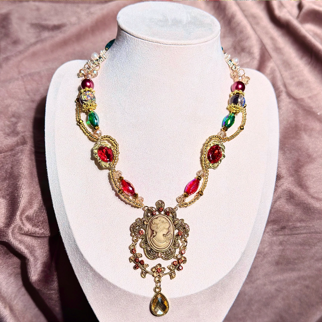• Design: Integrates Victorian court style, with cameo portrait reliefs as the centerpiece, paired with vintage gem inlays and multi-layered structures. The elaborate details fully capture the elegance of retro jewelry.