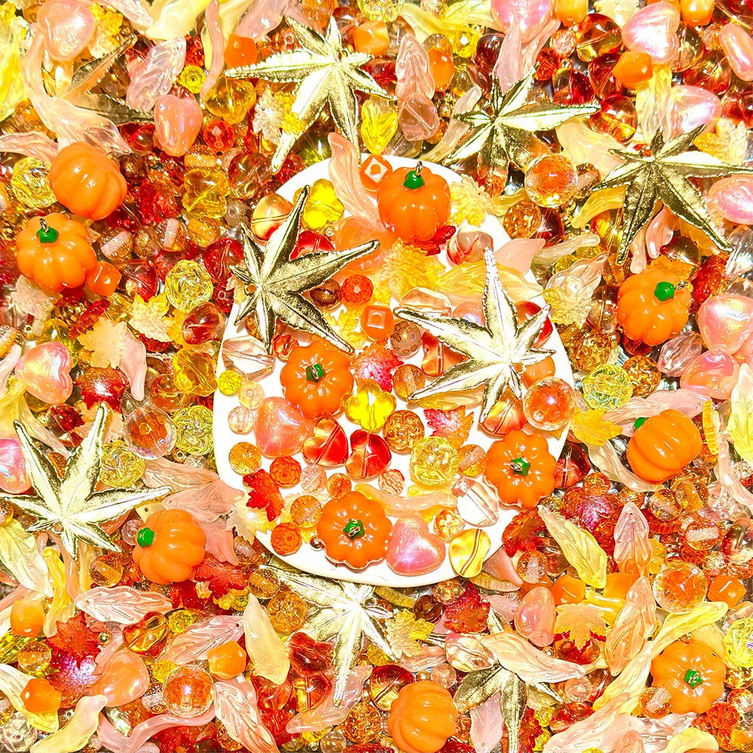 • Material: Glass beads, acrylic beads, paired with three-dimensional pumpkin and metallic-textured maple leaf accessories, with transparent and glossy texture.