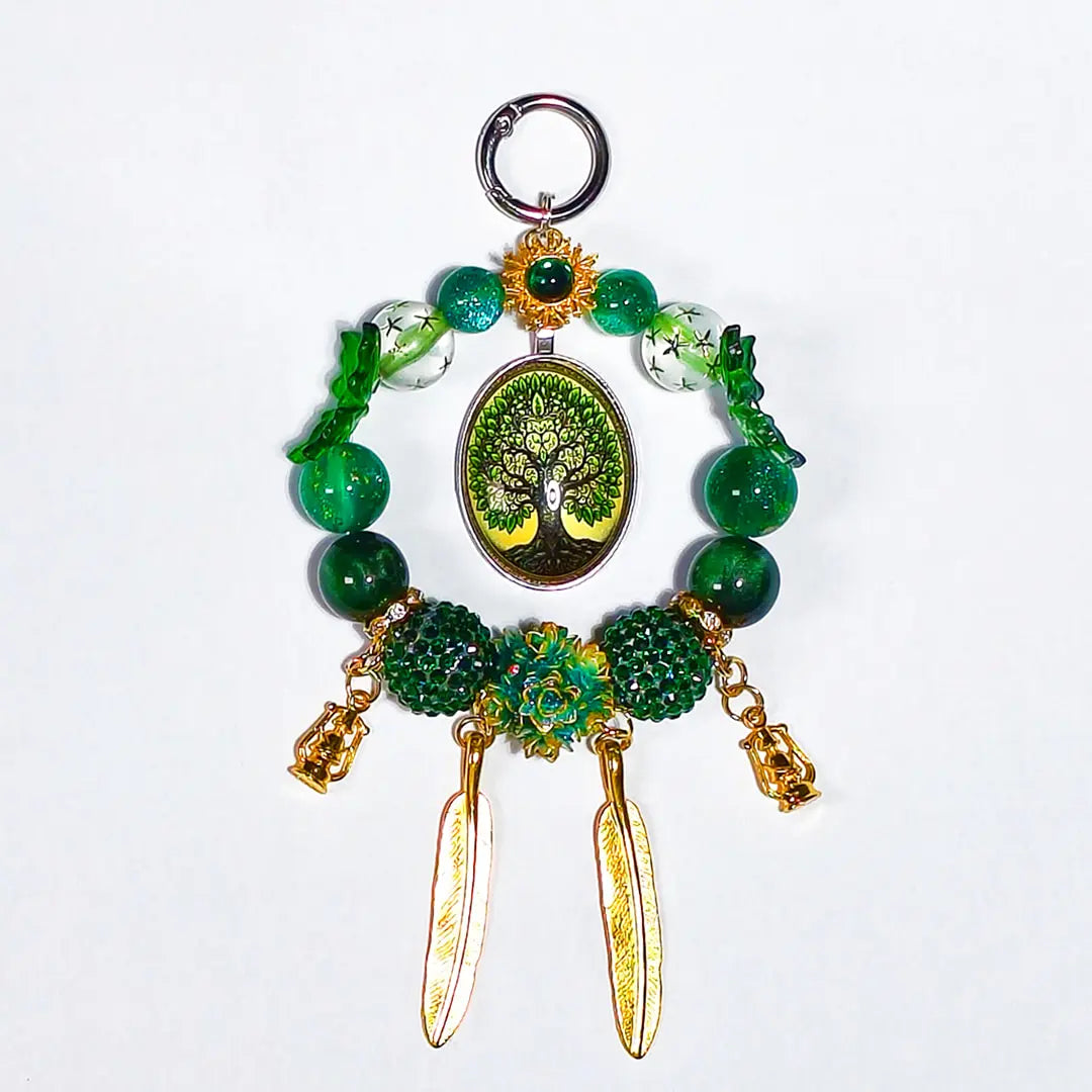• Material: Crafted from premium resin, shaped into intricate forest-themed charms like spell books, leaves, and ancient trees with highly detailed textures. Paired with frosted acrylic beads, textured glass, and polished alloy hardware for a layered, rustic-luxe finish. The blend of smooth resin, glossy glass, and cool metal creates an immersive, atmospheric dark fantasy experience.