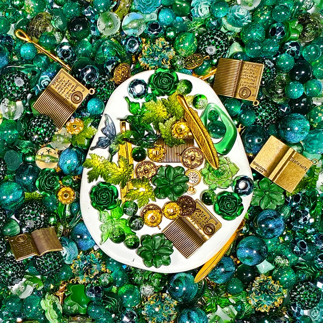 • Color: The mix features a moody, enchanted palette of deep forest green, raven black, smoky gray, and antique silver, echoing the misty, ancient magic of a secluded darkwood. Faceted glass and metallic alloy accents add an ethereal, otherworldly glow, mimicking fireflies flickering in the shadows and moss-draped branches. The rich, earthy color scheme embodies the primal power and hidden enchantment of the darkwood, perfect for statement-making, gothic-inspired accessories.