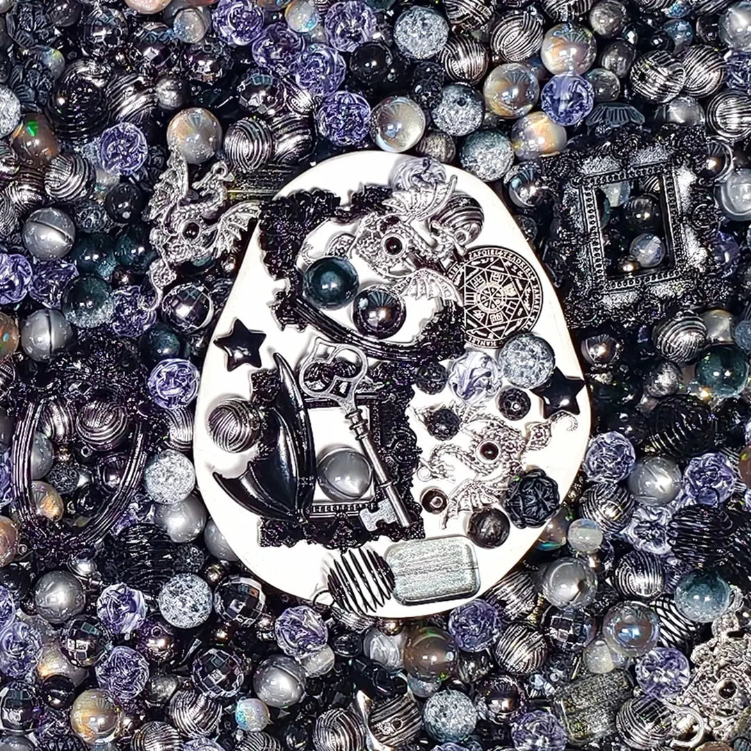 • Color: The mix features a dark, mysterious palette of deep black, obsidian gray, metallic silver, and faint iridescent blue, echoing the boundless, ancient aura of the void. Light-shift materials add a subtle, shifting glow, changing hues with light to mimic the flickering energy of ancient runes and magic circles. The cool, low-key color scheme exudes a strong sense of mystery and power, perfect for crafting edgy, statement-making accessories.