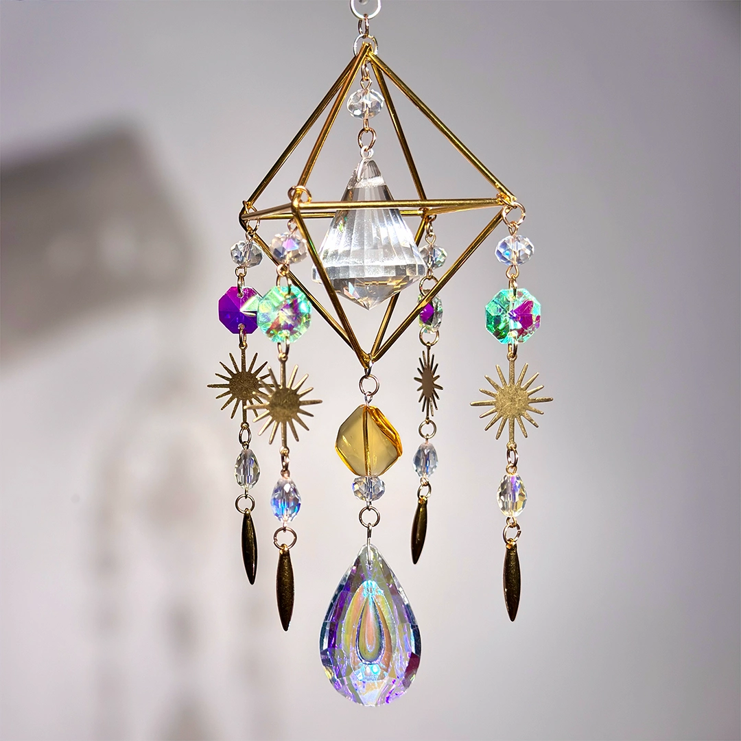 • Design:Takes the polyhedral geometry as the main shape, supplemented by teardrop-shaped crystal pendants and starburst decorations.