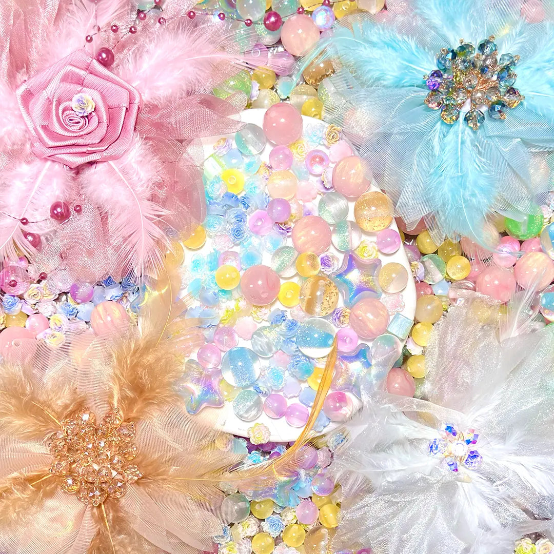 •Material: The mix combines three core materials to balance beauty, touch and practicality: resin is crafted into smooth and delicate beads with macaron-colored textures, which are lightweight and easy to string; all soft rubber flowers are made of high-quality luminous material, with a soft and elastic touch, and can emit a lasting glow at night (marked at the bottom right corner of the picture); organza is used to make exquisite flowers, adding a light and elegant texture to the mix. All components are fully stringable, and the combination of materials not only ensures the durability of DIY works but also enhances the overall delicate feeling, suitable for long-term use.